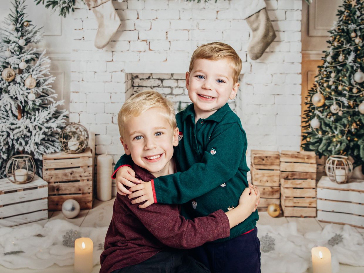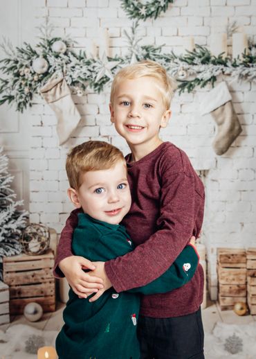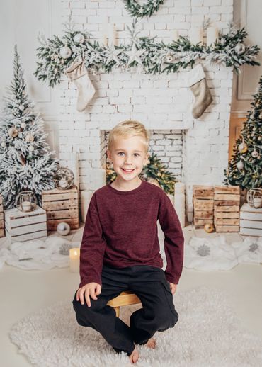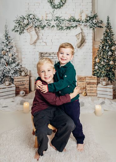 This years Christmas backdrop is a white and green cosy setting with the brick fireplace, candles & Christmas trees. Single portraits and family portraits (up to 5 sitters) will be taken with this set up.